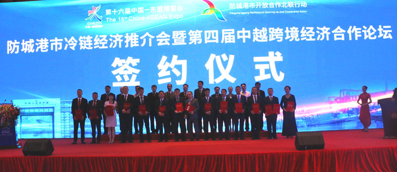 9月22日下午,作为第16届中国—东盟博览会、中国—东盟商务与投资峰会的一项重要活动,第四届防城港市冷链经济推介会暨第四届中越跨境经济合作论坛在广西南宁市举行。论坛由自治区商务厅、交通厅、南宁海关、中国—东盟博览会秘书处、中国铁路南宁局集团有限公司、防城港市人民政府、广西东兴国家重点开发开放试验区管理委员会主办。
