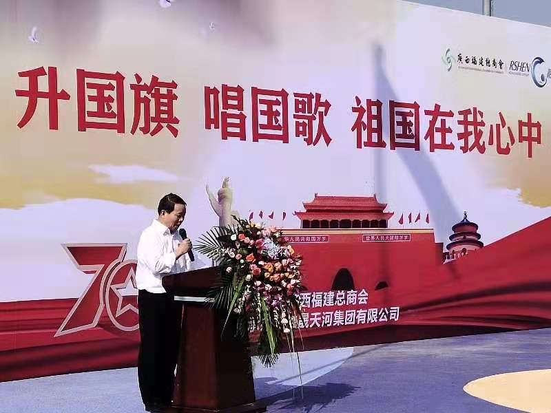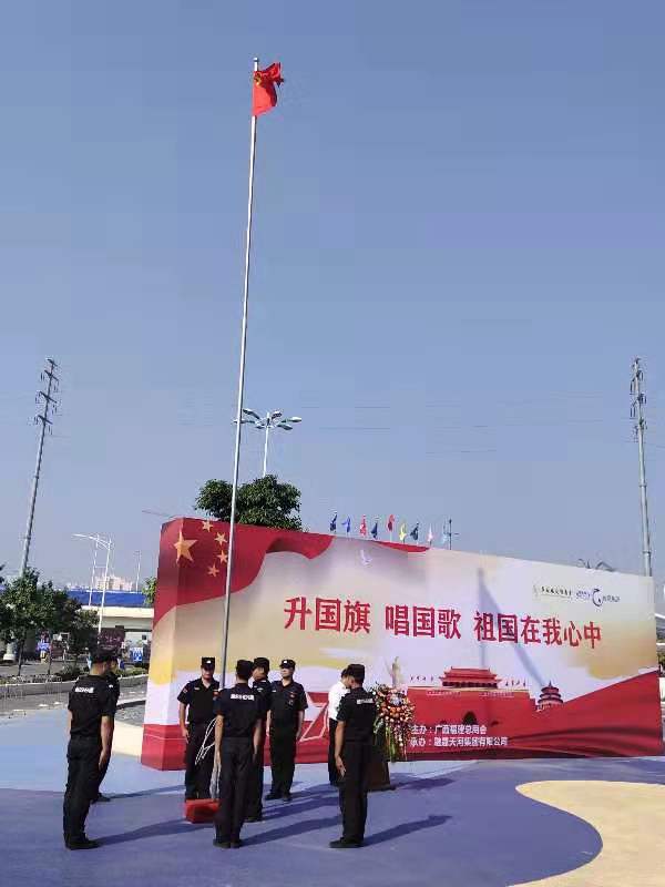 广西福建总商会在这里举行升国旗唱国歌仪式,以这庄严神圣的方式,表达广西福建总商会及全体会员团结一致、拼搏奋进的决心和意愿,抒发对伟大祖国无比崇敬的热爱之情。