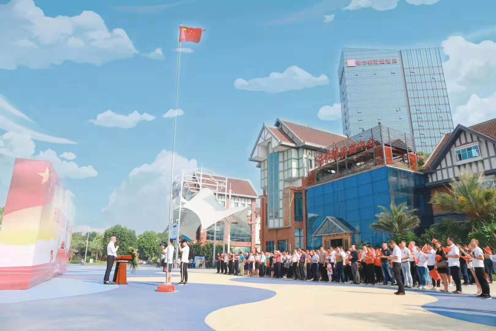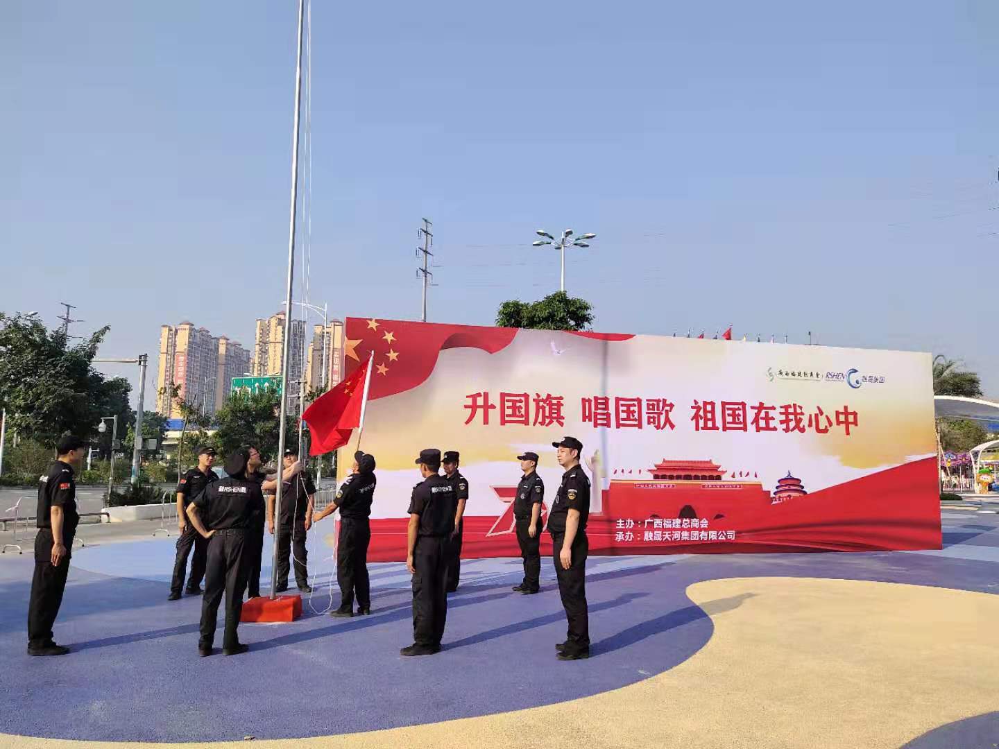 2019年10月1日,是中华人民共和国成立70周年华诞。9月29日上午,广西福建总商会以“升国旗,唱国歌,祖国在我心中“为主题的活动,在会员企业广西融晟集团旗下的融晟天河海悦城项目地隆重举行。