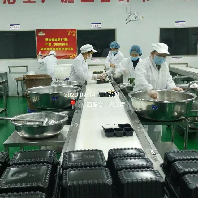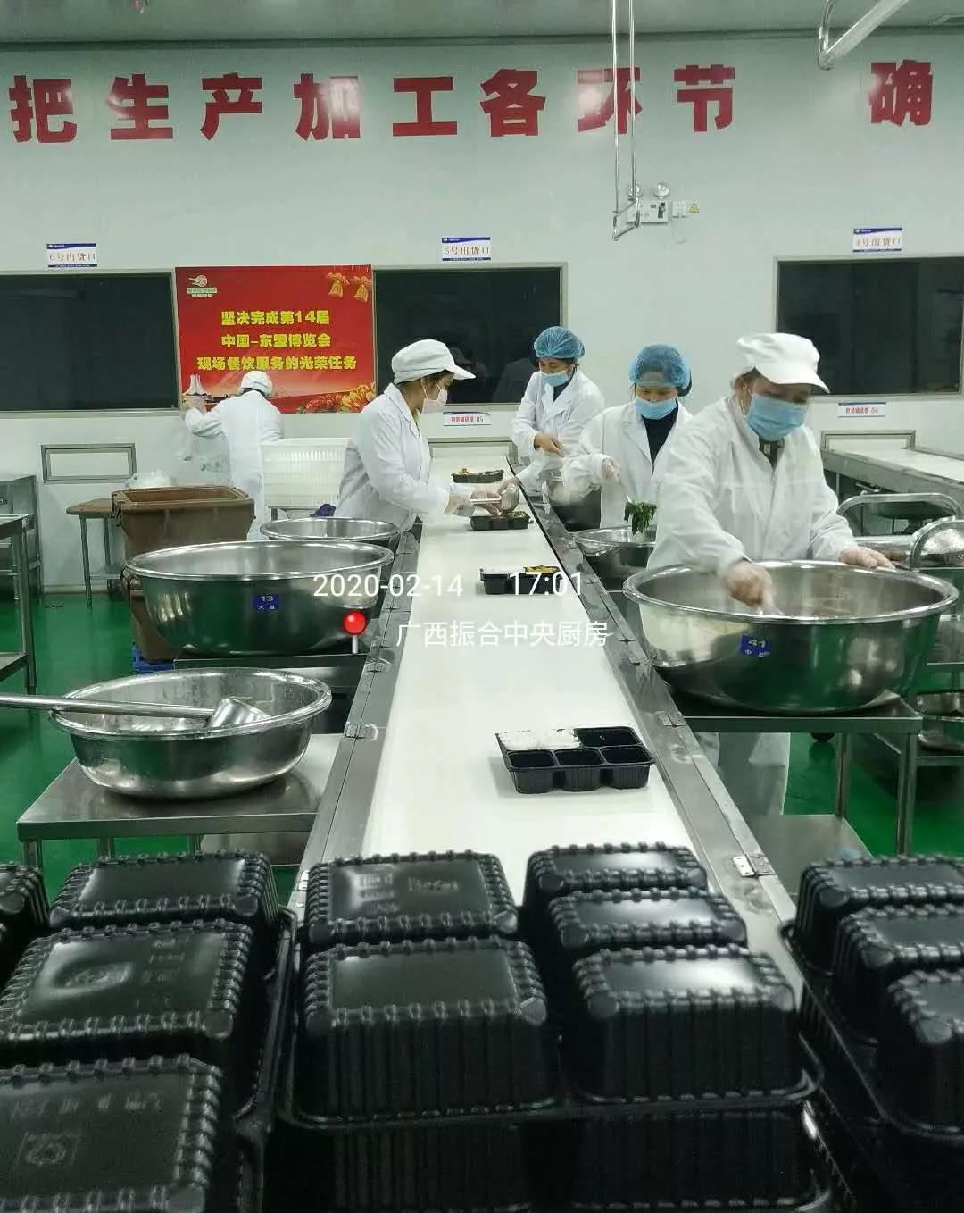 疫情当下,隔离病毒不隔离爱。广西振合供应链管理有限公司的中央厨房烹饪间,配备有燃气可倾汤锅、炒锅、自动蒸煮米饭生产线等多款大型自动化餐厨设施和设备,最大产能可达一日4万个盒饭。广西振合供应链管理有限公司,为保障战“疫”送餐的工作中,将贡献出自己应有的力量。