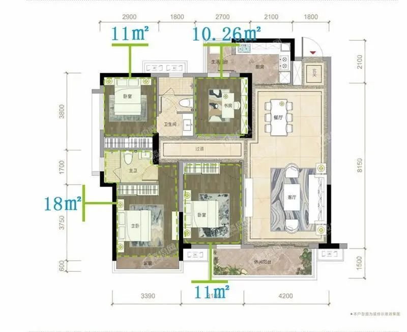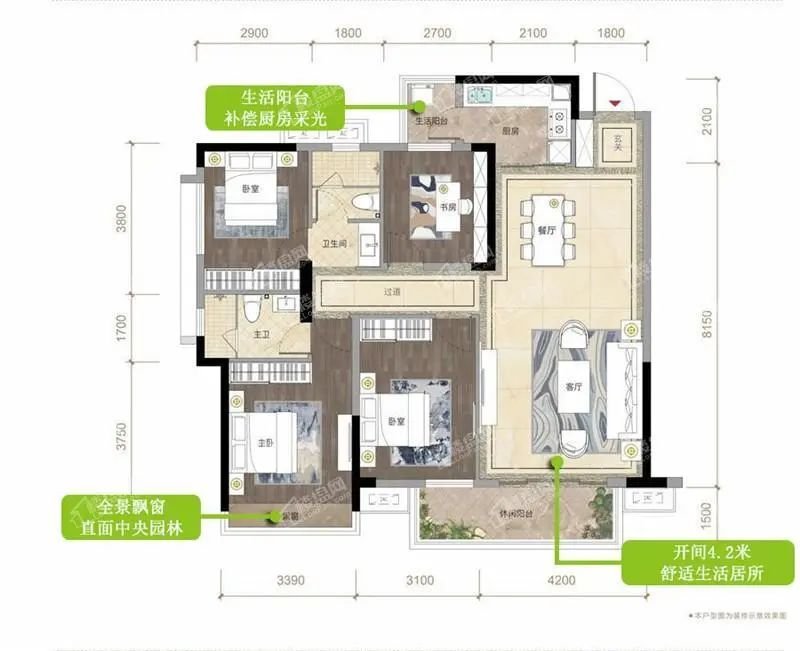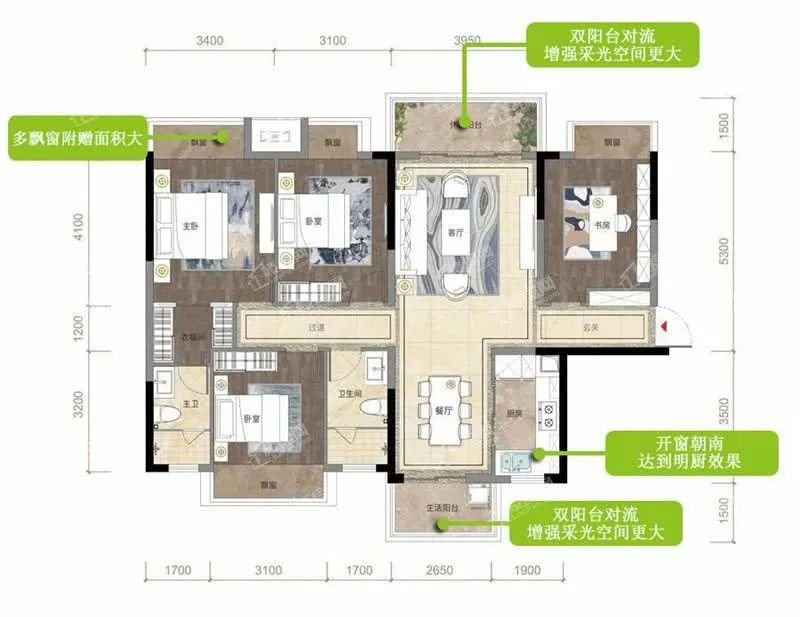 2. 全屋包含四飘窗双阳台,超多附赠面积让生活空间进一步扩大,让购房更加物有所值;