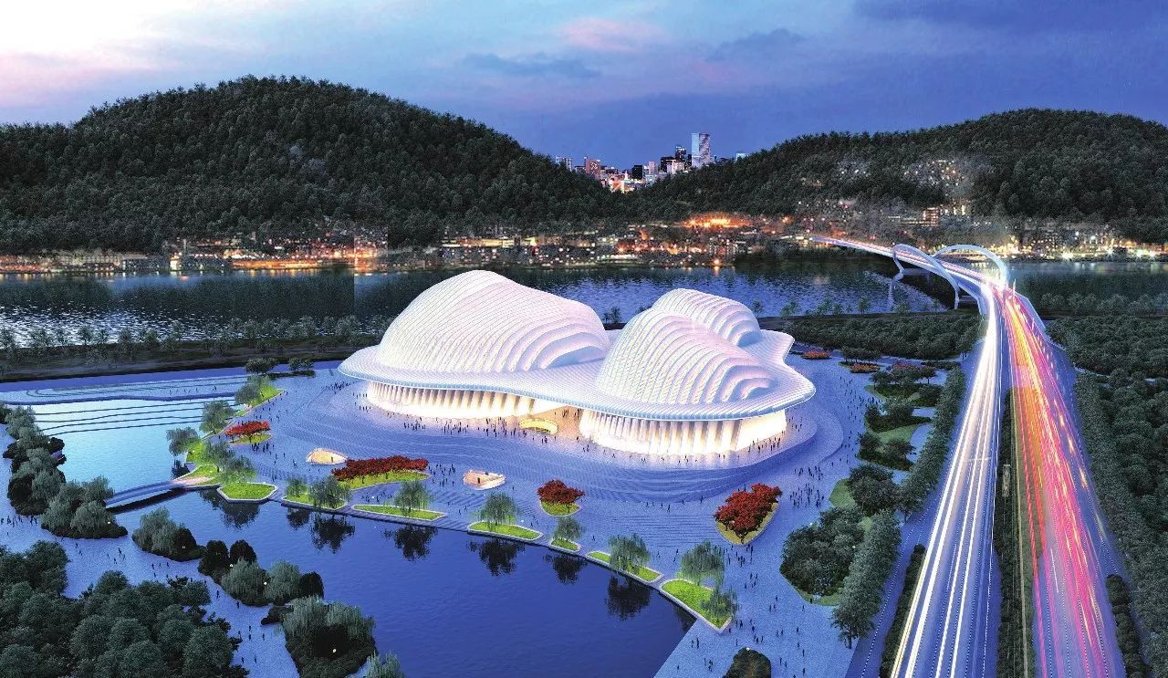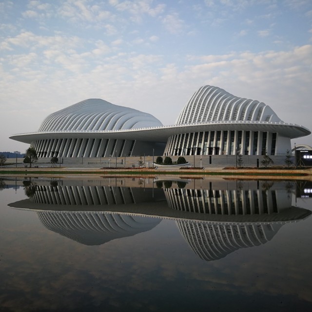广西文化艺术中心是由德国GMP建筑师事务所设计,其外形设计灵感来源于广西壮族自治区典型风光喀斯特地貌。由南宁威宁集团负责建设,该项目荣获2018-2019年度第二批中国建设工程鲁班奖。广西文化艺术中心总建筑面积约11.48万平方米,拥有一座1800个座位的大剧院、一座1200个座位的音乐厅、一座600个座位的多功能厅。