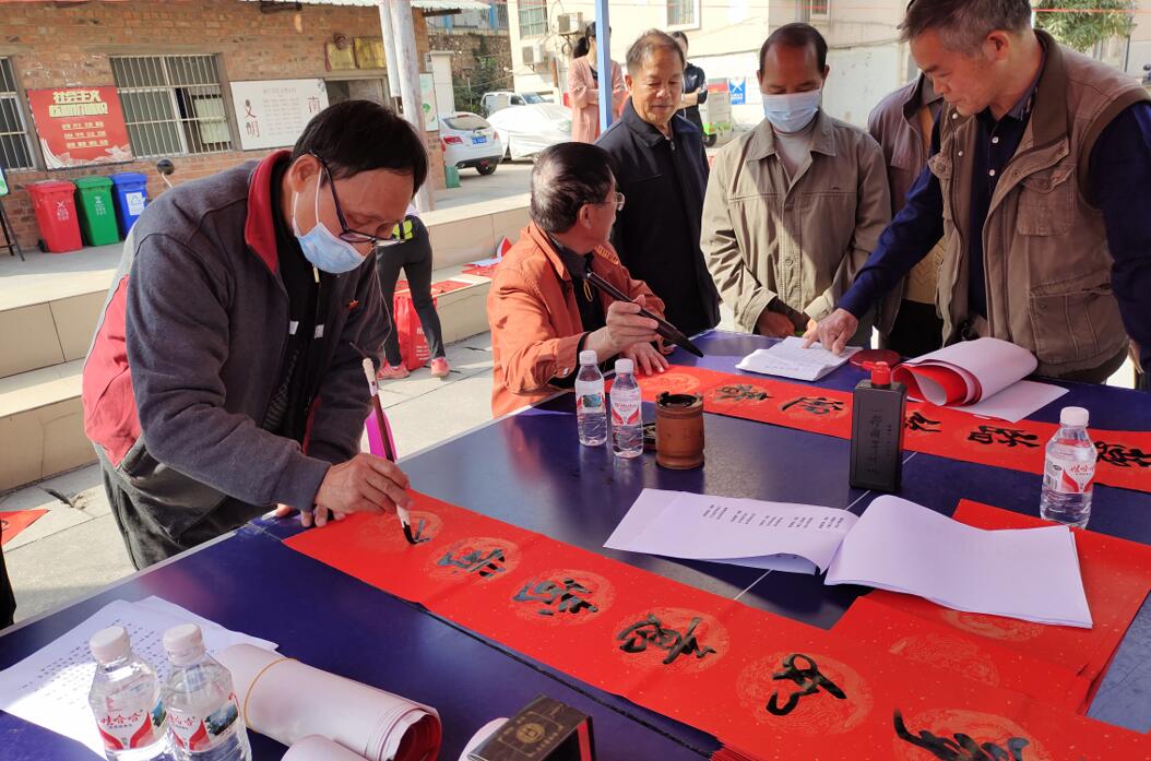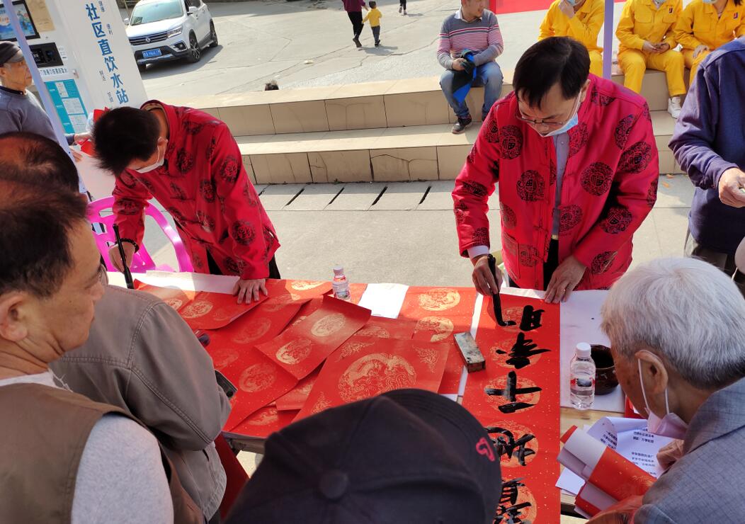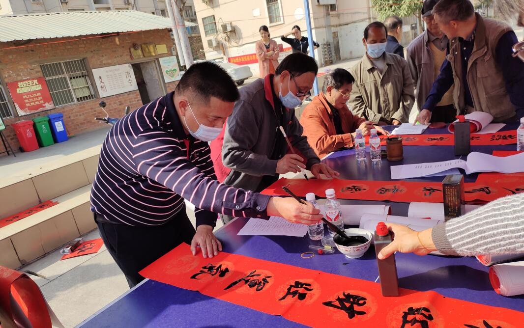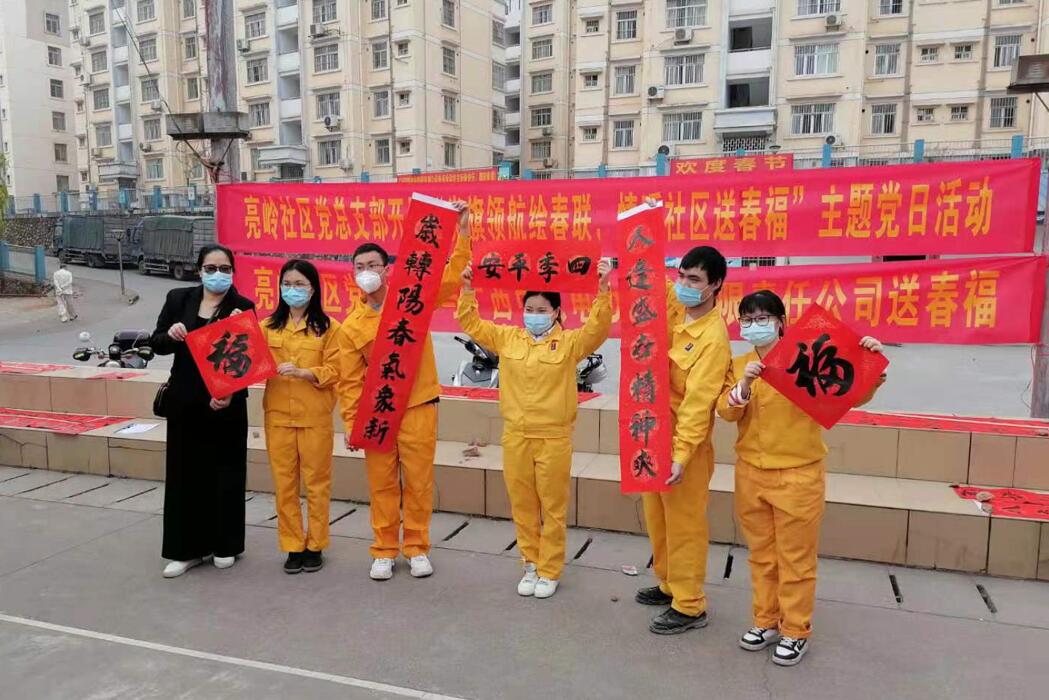 新春佳节临近,为弘扬中华民族传统文化,营造辖区吉祥喜庆的节日氛围,发挥党员先锋模范作用,促进社区和谐生活。2021年2月5日上午,亮岭社区党总支部在水电小区开展“党旗领航绘春联,情暖社区送春福"主题党日活动,为居民群众现场书写、赠送新春对联。同时联合广西中久电力科技有限责任公司给5位高龄党员送上牛奶、米等慰问物品,暖意融融,翰墨飘香,为社区群众送去新春的祝福。