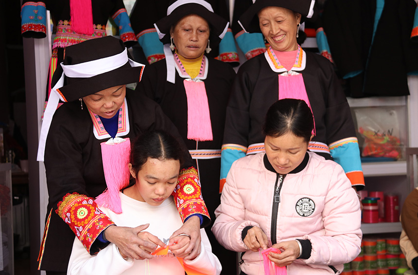 近年来,百色市右江区龙川镇在少数民族刺绣上做文章,全力推进六能村蓝靛瑶特色刺绣家庭作坊发展,促进家庭式刺绣生产,将零散的民间刺绣、工艺品和服饰加工逐步引向正规化、产业化,打响传统刺绣品牌,帮助更多妇女实现就业。