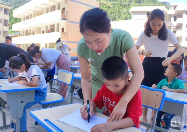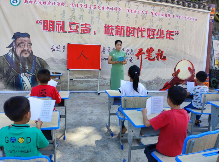 “人字开笔”环节,在老师的带领下,一年级新生写出了简单而意义深远的“人”字,寓意着在人生的启蒙阶段,学会做人是最为重要的。