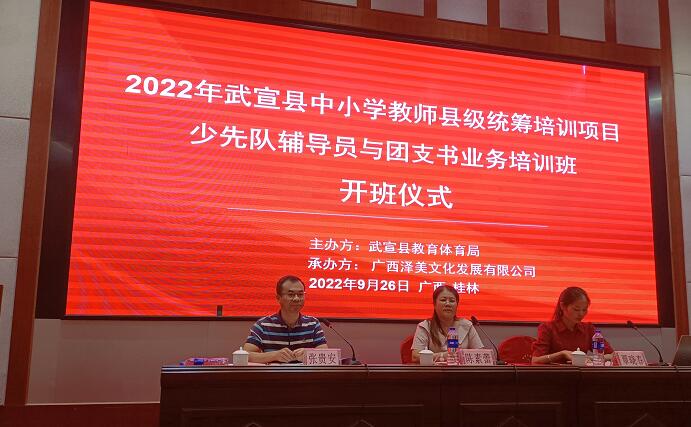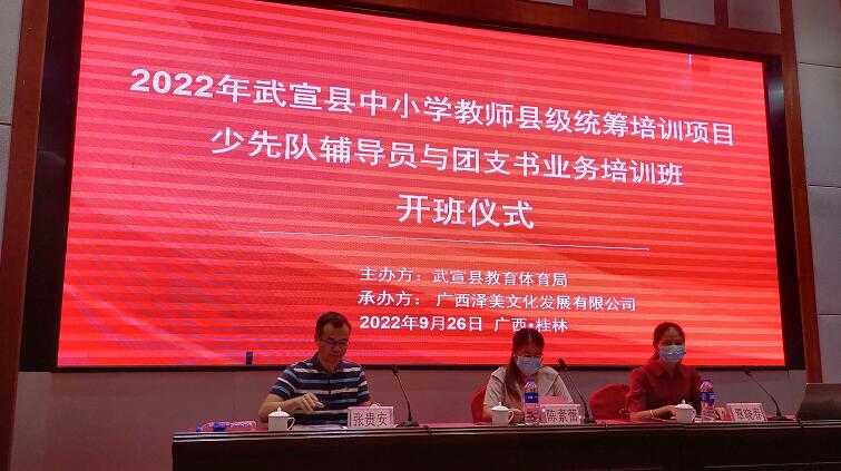 2022年9月25日至9月26日,“2022年武宣县中小学教师县级统筹培训项目-幼儿园骨干教师保教能力提升培训班”和“2022武宣县中小学教师县级统筹培训项目-少先队辅导员与团支书业务培训班”开班典礼,分别在南宁和桂林举行。