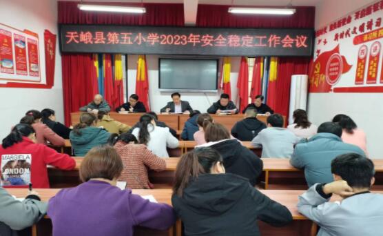 广西天峨讯(通讯员:张文毅 刘雍志) 2023年3月20日,唐欣校长组织召开天峨县第五小学安全稳定工作会议。
