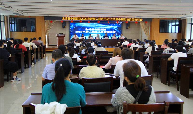 为全面落实清廉医院建设和依法治院工作,使新入职职工深入了解医院文化、规章制度和法律法规知识,增强职工的归属感与责任感,提升个人综合素养和专业技能,尽快实现工作角色转换,融入中医医院大家庭,2023年9月4日至9月8日,全州县中医医院在门诊综合楼12楼大会议室开展2023年度新入职职工和2023届中医类别助理全科医师岗前培训会暨新任中层干部和新入职职工宪法宣誓仪式。院领导班子、工会主席、职能科主任及副主任、新任命中层干部、新入职职工、2023届中医类别助理全科医师参加培训班开班仪式。