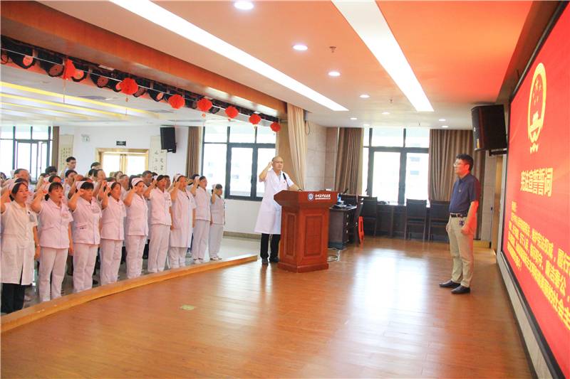 为进一步弘扬宪法精神,维护宪法权威,切实增强干部职工的使命感和荣誉感,9月4日,全州县中医医院举行新任职中层干部和新入职职工宪法宣誓仪式。唐专红支书主持宣誓仪式。