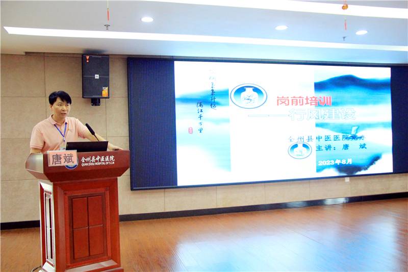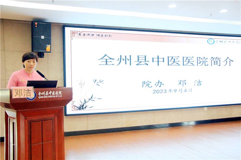 院办邓洁主任讲解《全州县中医医院简介》和人事管理制度,全面介绍了医院的基本情况、人事考核与管理等。