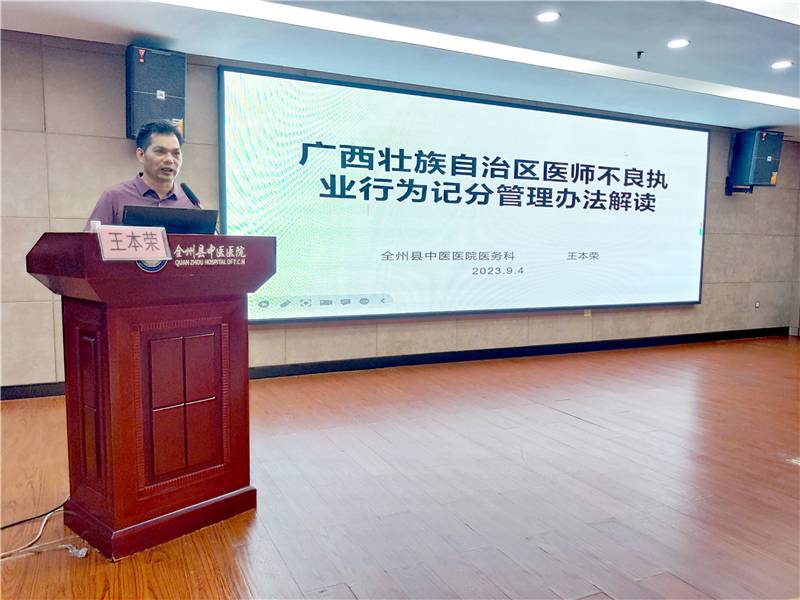医务科王本荣主任讲授《广西壮族自治区医师不良执业行为记分管理办法解读》。