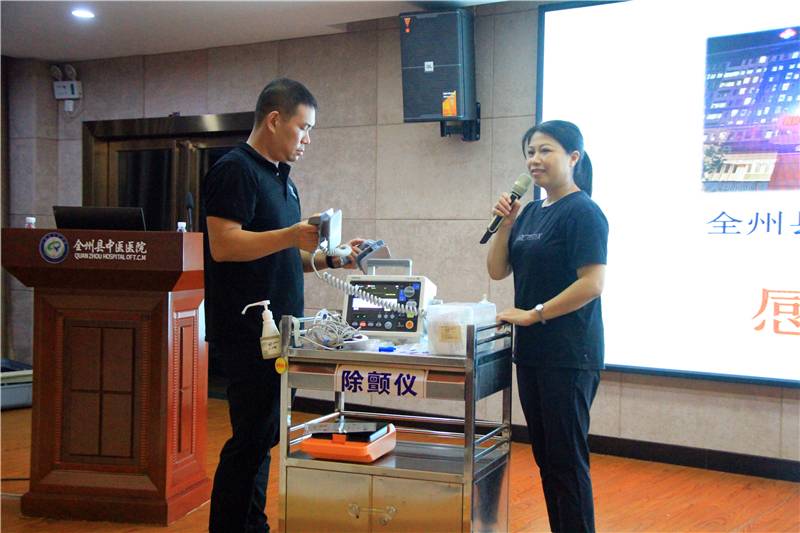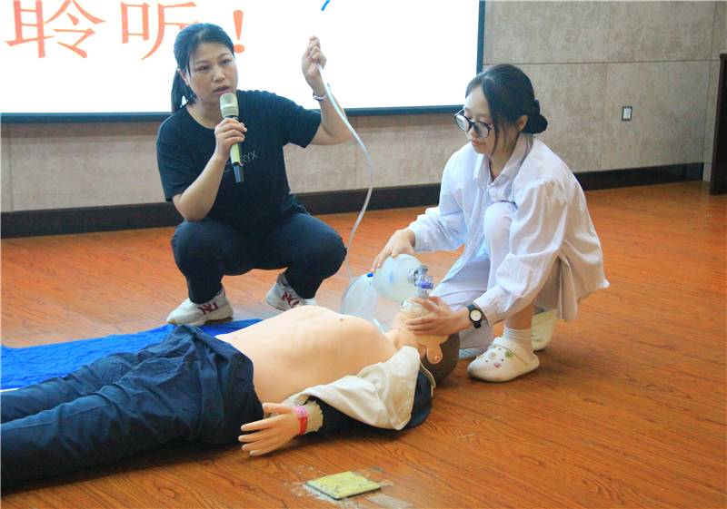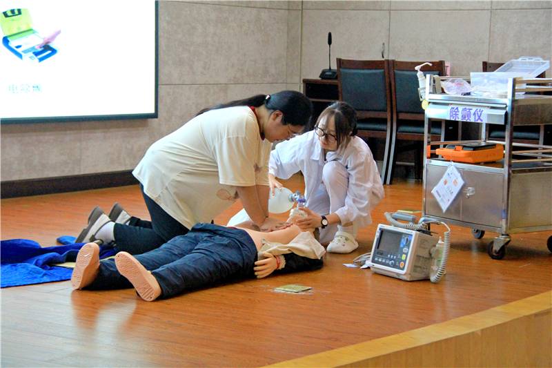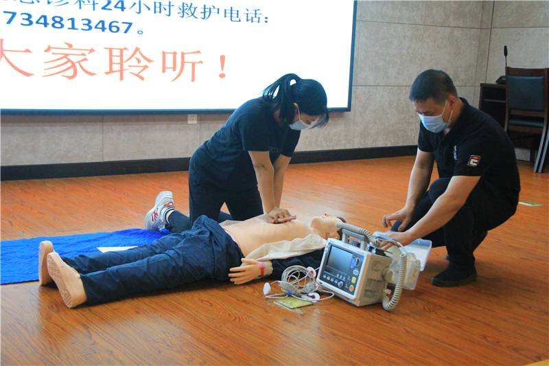 急诊科邓杰主任与急诊科唐琼护士长现场演示心肺复苏的具体操作过程