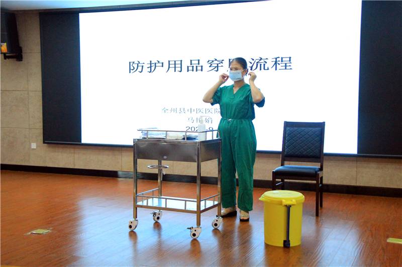 感控科马艳娟副主任演示《防控用品穿脱流程》。