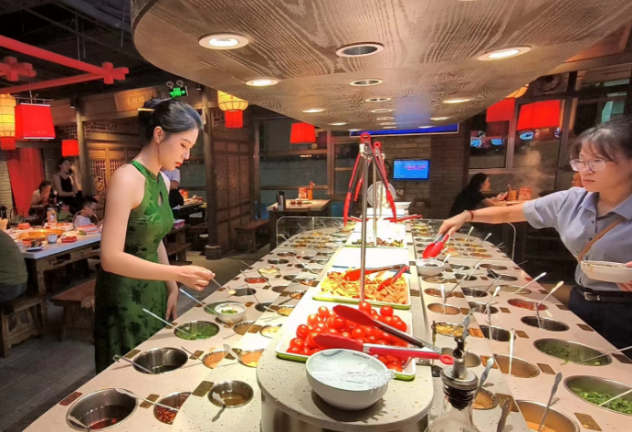 10月4日,南宁位于东盟商务区盛天地的小龙坎火锅店爆火了,30多位环球小姐尝试到店客串服务员和厨师、经理各个职位,与在店的客人粉丝们进行互动。在欢快笑声中感受节日的快乐。