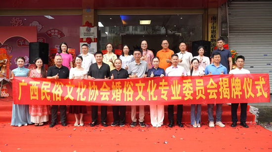 10 月 3 日,广西民俗文化协会婚俗文化专业委员会揭牌仪式在南宁市良庆区银海大道 382 号广西芊禧红娘婚姻公司盛大举行。广西民俗文化协会领导、区内婚恋服务机构代表及产业链供应链企业负责人齐聚现场,共同见证广西婚俗文化产业 “民俗 + 婚恋 + 科技” 融合发展的重要里程碑。