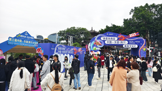 在活动现场的另一侧,“筷意东南亚:2025中国 - 东盟(南宁)美食文化汇”吸引了众多市民和游客的目光。这里汇聚了中国和东盟各国的特色美食,从泰国的冬阴功汤到马来西亚的肉骨茶,从越南的春卷到中国广西的螺蛳粉,各种美食琳琅满目,香气四溢。游客们可以一边品尝美食,一边感受不同国家的饮食文化,增进对彼此的了解和友谊。