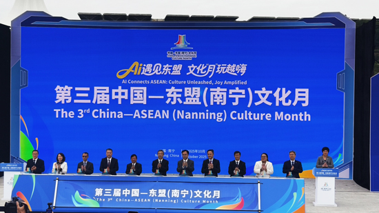 2025年10月23日,中国广西南宁民歌湖热闹非凡,以“AI遇见东盟,文化月里玩越嗨”为主题的第三届中国 - 东盟(南宁)文化月活动在此盛大启幕。本次活动融合了科技元素与东南亚特色文化,为现场观众带来了一场别开生面的视听盛宴。