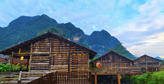 沿着蜿蜒曲折的石板路缓缓前行,路旁是错落有致且富有年代感的木板楼。它们依山而建,历经岁月的风雨洗礼,却依然坚固如初,质朴中透着一种岁月的沧桑。这些木板楼是壮族先民与自然和谐共处的智慧结晶,每一根木材都承载着岁月的痕迹,每一片瓦片都诉说着历史的记忆。我轻轻抚摸着斑驳的木板,仿佛能听到岁月的回声在耳边回荡,感受到先人们在这里辛勤劳作、生活的烟火气息。
