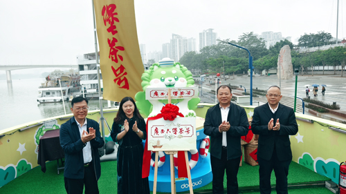 活动现场,嘉宾见证“广西六堡茶号”揭幕与鸣笛启航。伴随《六堡茶歌》旋律,“广西六堡茶号”驶向江面,象征广西六堡茶产业迈向广阔发展前景。