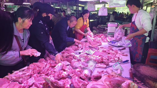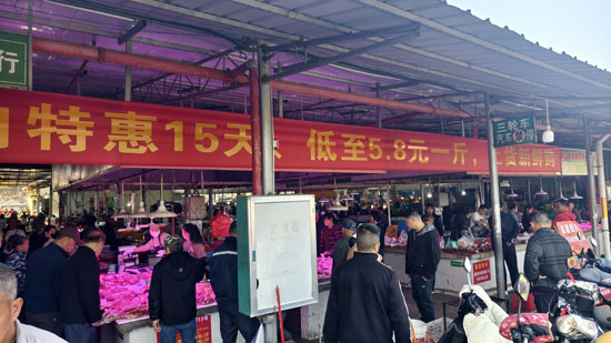 冬至当天,本就热闹的市场因一场力度空前的“放价”活动变得更加火爆。市场内横幅、水牌醒目地写着“新鲜猪肉 5.8 元/斤”,如此实惠的价格比一杯加珍珠的奶茶还便宜,着实让前来的市民惊喜不已。