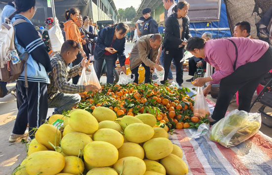 近日,南宁市邕宁区康岭农副产品交易市场在冬至期间掀起了一股购物热潮,以其亲民的价格和丰富的农副产品吸引了众多市民前来采购。