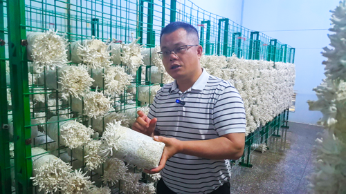 产业发展模式上,企业创新推行“工厂化种植+农户返包经营”双线联动模式:由基地集中培育标准化优质菌棒,工厂化种植实现高效周转,单次采收一茬;同时将优质菌棒统一发放给农户,配套全程技术跟踪指导,助力农户实现4至5茬持续采收,大幅提升农户种植收益,真正构建起企业增效、农户增收的互利共赢格局。目前企业年产菌棒达1200万个,基地年产值超千万元,带动农户联动发展后,整体产值突破2000万元。