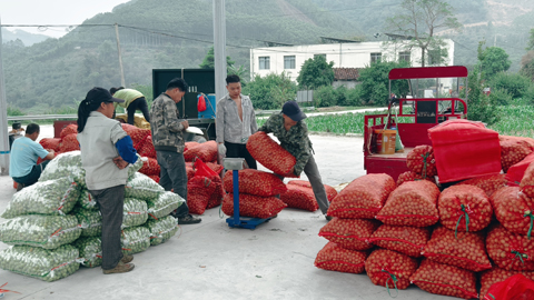 走进各村青梅收购点,更是一派火热繁忙的丰收景象。一辆辆满载鲜果的农用车有序排队停靠,一袋袋封装规整的青梅整齐堆放,每袋净重约60斤;收购工作人员熟练地过秤、验货、结算,搬运工人快速装车,一车车600斤左右的鲜果源源不断运往深加工企业和外地市场。询价声、结算声、搬运声交织在一起,处处洋溢着春日丰收的喜悦与烟火气。