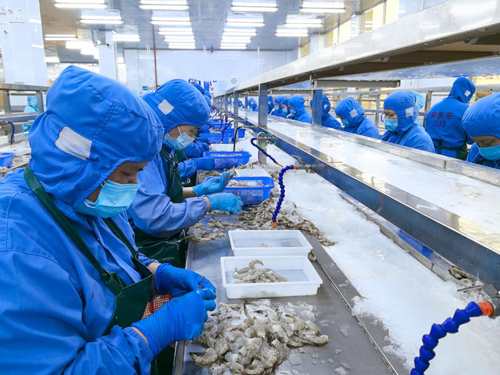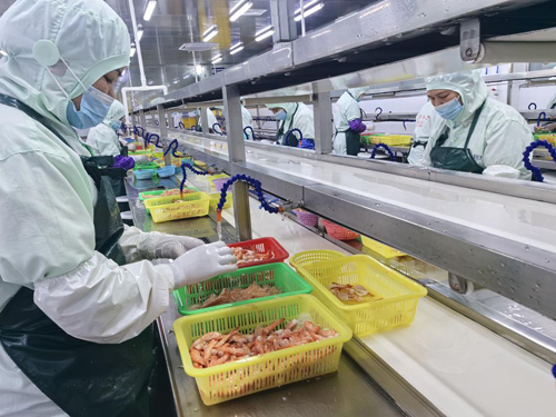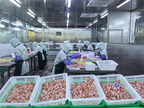 北海市宽利水产有限公司业务厂长谢福贺介绍,企业优选北部湾优质海产品为原料,涵盖生态养殖对虾、海捕鱿鱼、金枪鱼等,主打虾滑等深加工产品。凭借先进生产工艺与严苛品控,产品各项指标处于行业领先水平,且拥有欧盟认证,品质安全可靠。目前,企业产品畅销全国各地,并批量出口东南亚等地区,年产值达4亿多元,产能稳定充足。同时,企业积极发挥龙头带动作用,通过“企业+合作社+农户”模式,辐射带动当地100多户、上千人参与对虾养殖,有效助力农户增收、赋能乡村振兴。
