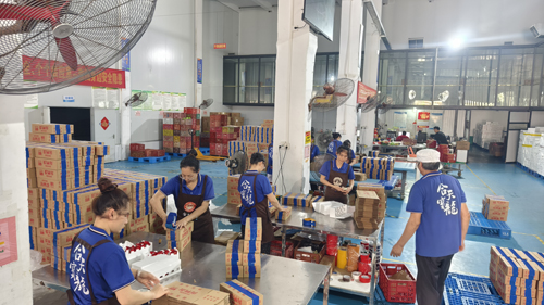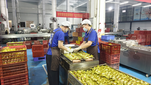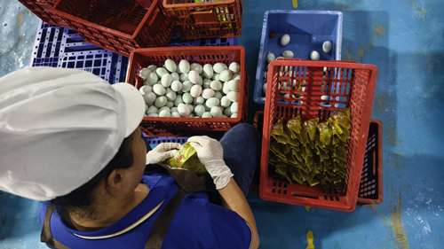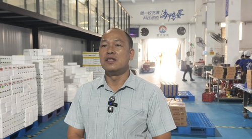 在合天宝龙生产车间,采风团感受现代化生产盛况,工人加班赶制端午节订单,展现企业生产能力与市场需求。该公司是北海合浦海鸭蛋产业核心龙头,集养殖等多环节于一体,创新打造全产业链体系,构建闭环发展格局。